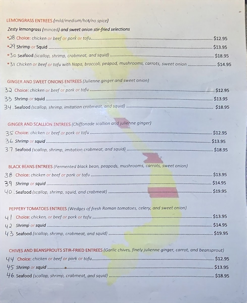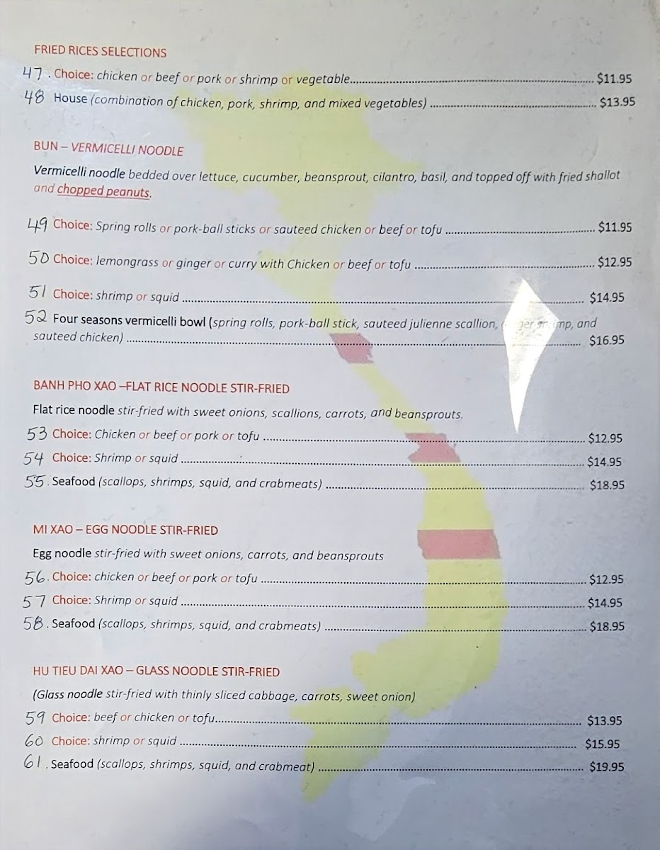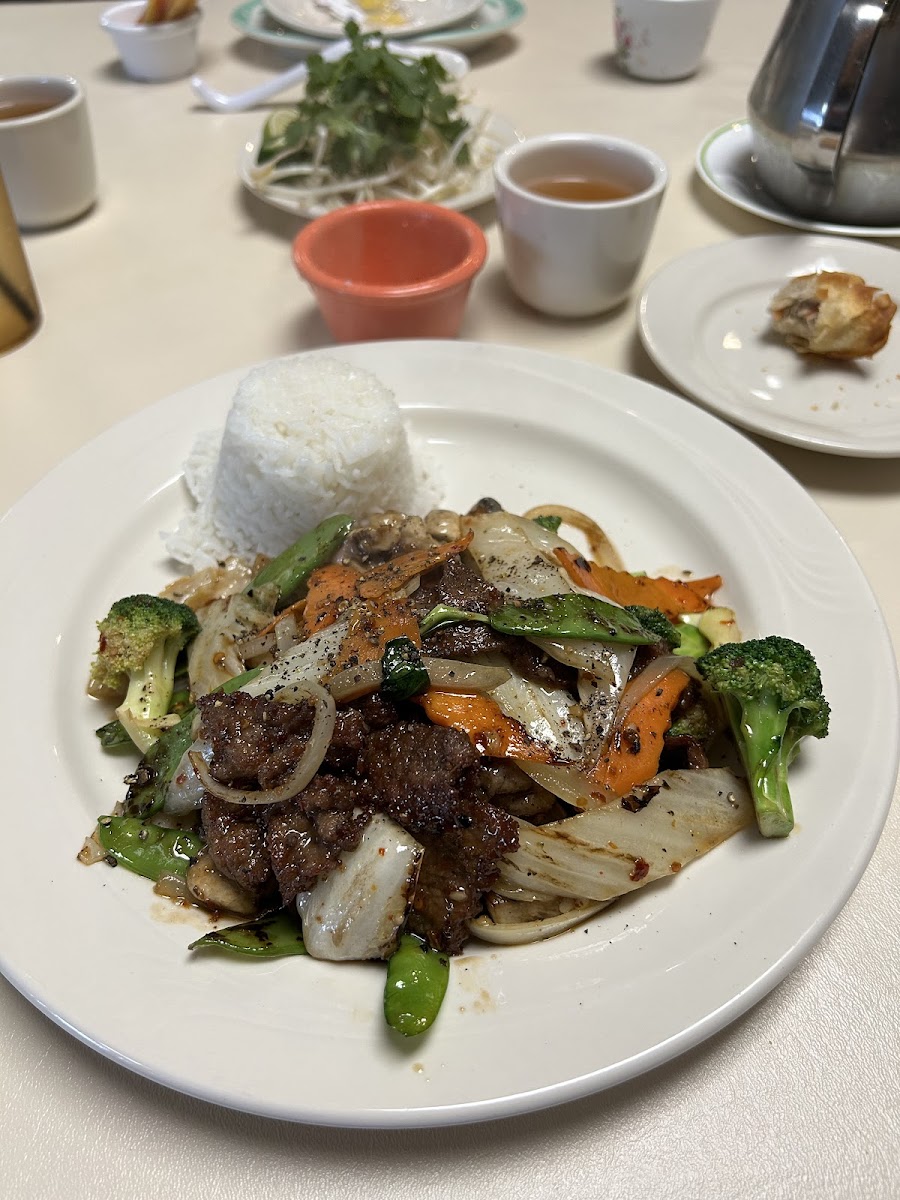 Another highlight is the Chef's Special Bo Luc Lac, featuring tender cubes of beef lovingly stir-fried and served on a bed of fresh lettuce, tomatoes, and cucumbers for a refreshing crunch. If you prefer lighter fare, the Lau Chay, a hot pot filled with assorted vegetables, tofu, and clear noodles, hits the spot with its robust flavors.